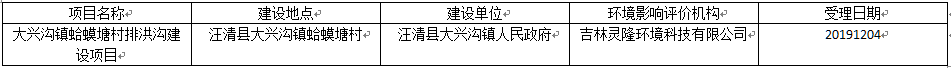根据建设项目环境影响评价审批程序的有关规定,现将大兴沟镇蛤蟆塘村排洪沟建设项目环境影响报告表受理情况予以公示,公示期为5天。 联系电话:0433-8855850、0433-8813060
