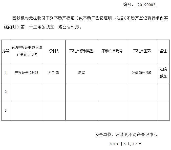 朴哲洙不动产权证书/登记证明作废公告