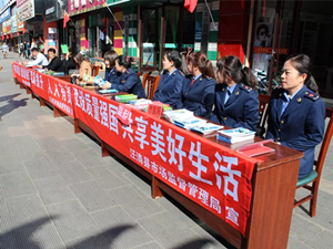 县市监局特种设备、餐饮流通、药械等涉及民生产品质量的部门工作人员,现场为群众发放宣传材料、答疑解惑,宣传法律知识。通过本次活动,为群众发放食品、药品、旅游等相关宣传材料280份,发放宣传单196份,设立宣传条幅4条,解答疑问11件。
