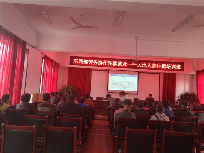 培训时间为期2天,共计30个具有劳动能力的贫困户参加培训。培训内容为东西部劳务协作转移就业——大地人参种植等。通过培训提高农民人参种植的知识面,教育和指导农民进行科学种植人参,增加农民收入,加快脱贫致富步伐。