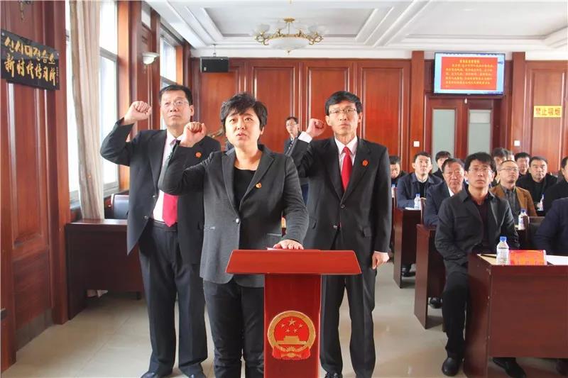 会议进行了人事任免,咸博武代表县政府提请任免职议案,县法院、县检察院相关负责人代表县法院、县检察院提请任免职议案。县委组织部相关负责人介绍了县政府副县长人选1名。经过表决,所有任免职议案全票获得通过。免去黄进辉、赵春同志县政府副县长职务;辽宁银监局监管副调研员宋璐同志当选为县政府副县长。刘春吉向宋璐等人颁发了任命书。新任职的宋璐等人庄重地向宪法宣誓。