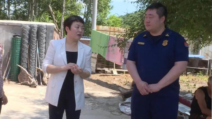 在新恒升商贸有限公司,金桂英详细了解了公司安全保障措施,询问了消防设施配备、值班制度,人员配置等,查阅了管理制度、应急预案、操作人员流程等,要求企业严格按照规定制度履行消防安全责任,加大日常巡视、检查频次,对重点区域、部位着重看管,严禁携带火种入内。