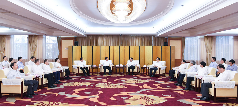 省领导张安顺、王凯、朱天舒,省政府秘书长彭永林参加会见。(曹梦南/文 宋锴/摄)