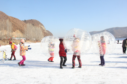 冰雪乐园人头攒动,来自延吉、汪清等地的游客近300多名游客在雪地上玩闹着。有汽车在河面上拉着成列的雪圈在冰上游走,风声从耳边呼啸而过,雪圈上的人不时发出尖叫。河坝上坐在雪圈上的人沿着陡坡雪道瞬间滑落下来,雪花拍在脸上,真是过瘾。还有雪地悠悠球失重与旋转的双重刺激、雪地独轮车的悠闲及真人CS团队作战的乐趣。各种各样的冰雪项目让游客既可以欣赏美丽的冰雪风光又可以体验冰雪运动的乐趣,这样的冬天虽然寒冷,却也很精彩。“这是太好玩了!听朋友说这里有冰雪乐园,离得近还项目多,最主要的是在玩的同时又可以为扶贫作贡献,觉得很有意义。”来自汪清镇的王小姐高兴地说。